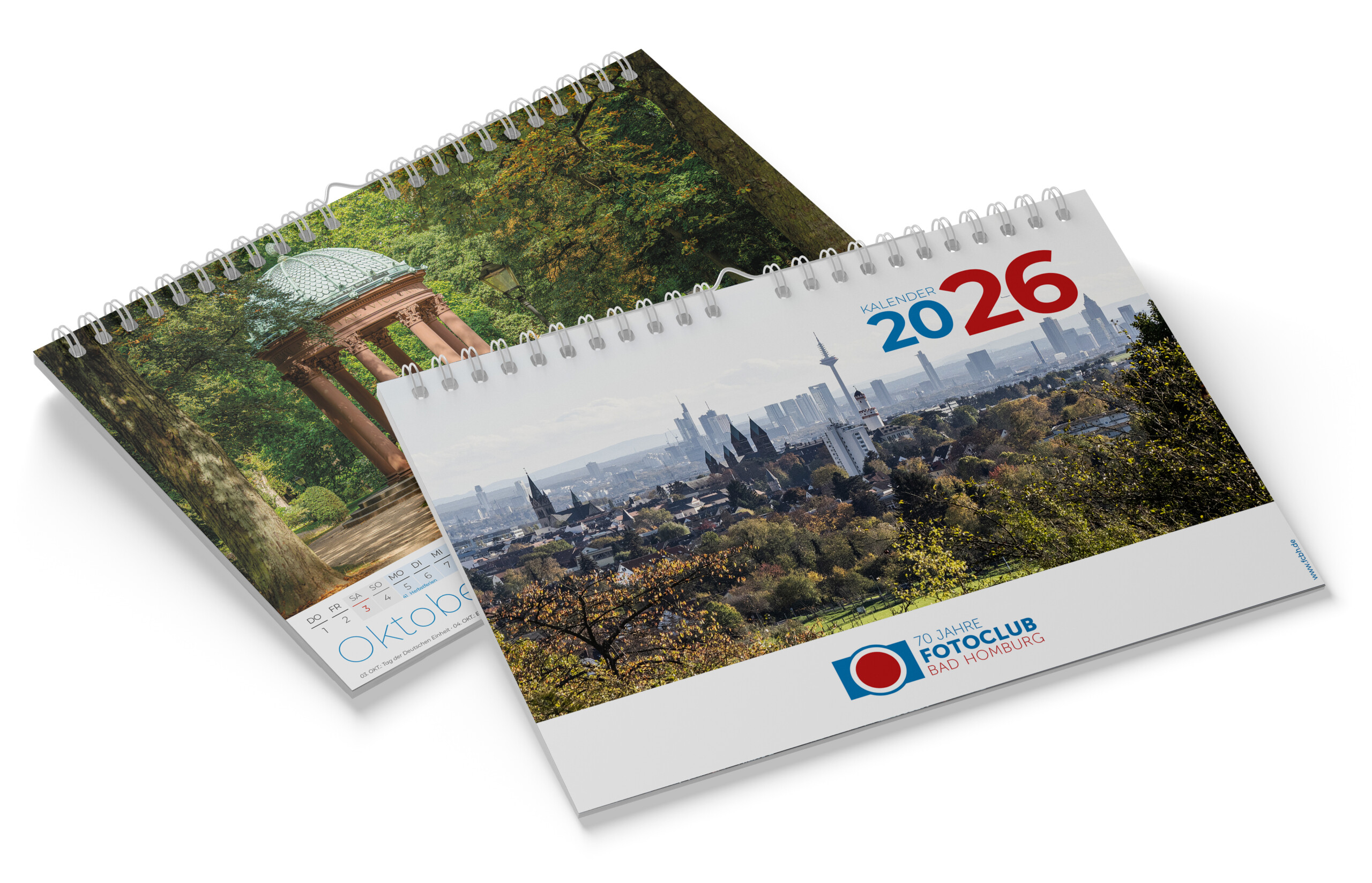 Der Fotoclub Bad Homburg präsentiert seinen Jahreskalender 2026, mit 14 eindrucksvollen Stadtansichten, die Bad Homburg von seiner schönsten Seite zeigen.