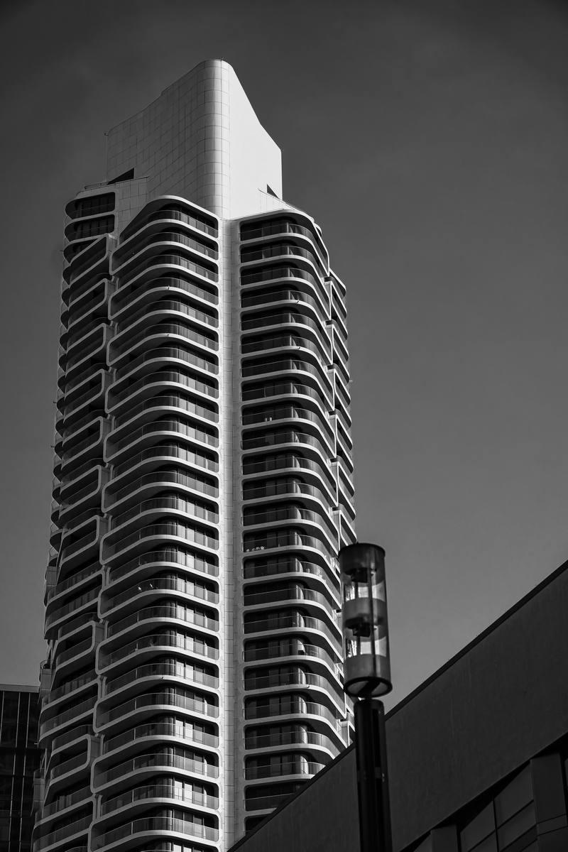 Das Thema des Abends: Architektur. Für die Hochhäuser galt die Empfehlung, maximal 24 mm Brennweite zu verwenden, um die Gebäude im Ganzen einzufangen. Für Details kamen Teleobjektive mit bis zu 200 mm Brennweite zum Einsatz. Ein Stativ war dabei ein unverzichtbarer Begleiter, um den Lichtverhältnissen Stand zu halten bzw. sich nicht zu sehr verrenken zu müssen. Andere wagten den Schuss aus der Hand.